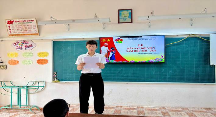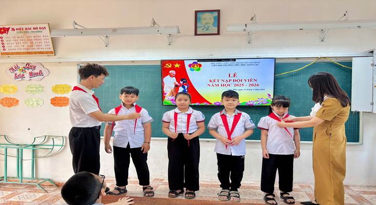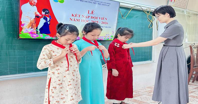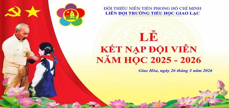 Được đứng trong hàng ngũ của Đội TNTP Hồ Chí Minh, được mang trên vai chiếc khăn quàng đỏ thắm là mơ ước của lớp lớp Nhi đồng Việt Nam. Chào mừng kỷ niệm 85 năm ngày thành lập Đội TNTP Hồ Chí Minh ( 15/05/1941-15/05/2026) và 95 năm ngày thành lập Đoàn thanh niên Cộng sản Hồ Chí Minh ( 26/3/1931-26/03/2026). Sáng ngày 26/03/2026 Liên đội trường Tiểu học Giao Lạc long trọng tổ chức lễ kết nạp Đội viên cho 223 nhi đồng xuất sắc của khối lớp 3 năm học 2025- 2026. Về dự buổi lễ kết nạp đội viên, có Thầy Đinh Huy Hoàng Tổng phụ trách Đội, các thầy cô giáo trong Ban phụ trách Đội cùng toàn thể nhi đồng Khối lớp 3