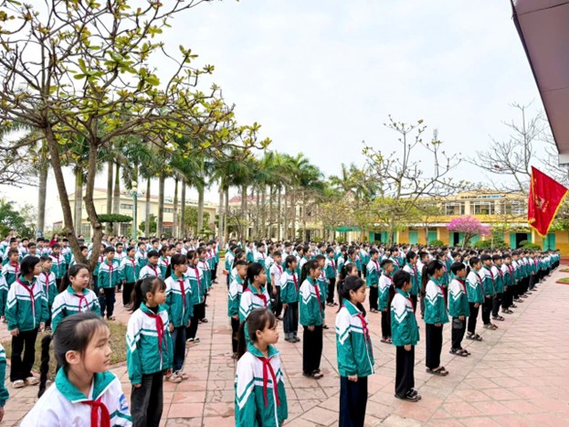 Học sinh toàn trường trong nghi lễ chào cờ