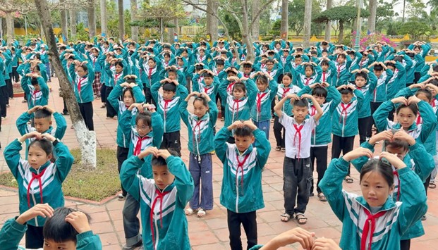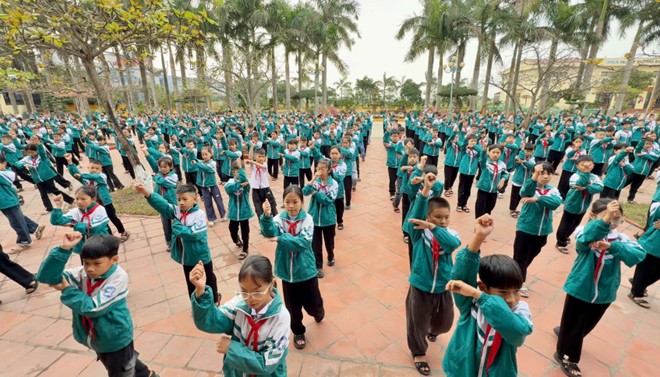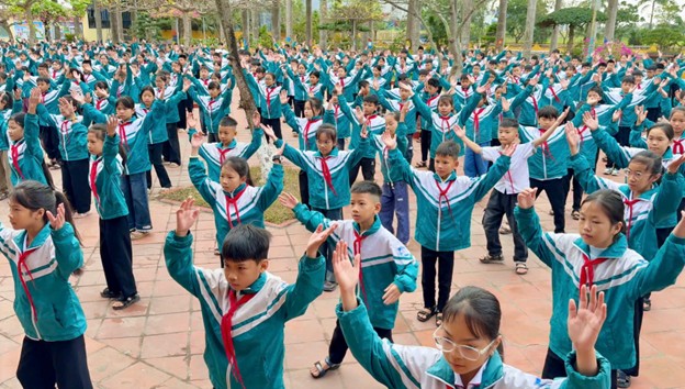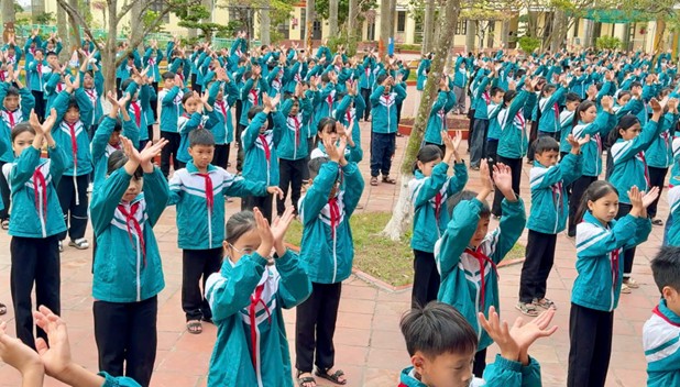 Học sinh toàn trường tham gia đồng diễn.