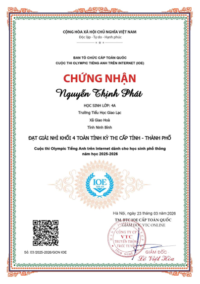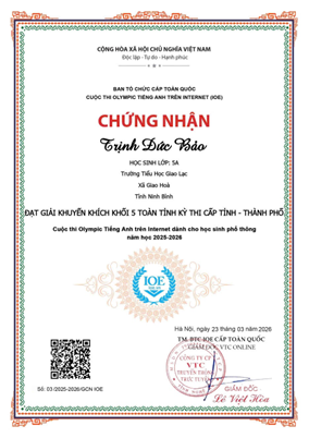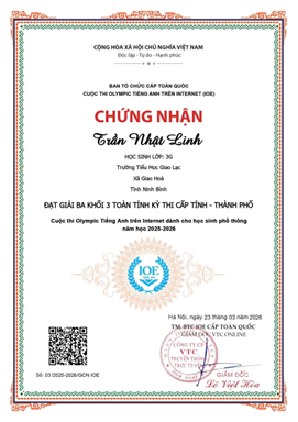 Đặc biệt, thành tích từ cuộc thi đã tạo nên sức lan tỏa mạnh mẽ, khơi dậy phong trào học Tiếng Anh sôi nổi trong toàn trường; mỗi giờ học không chỉ dừng lại ở việc tiếp thu kiến thức mà còn trở thành hành trình khám phá ngôn ngữ, văn hóa và thế giới rộng lớn bên ngoài, giúp học sinh hình thành tư duy toàn cầu, rèn luyện sự tự tin, khả năng giao tiếp và bản lĩnh hội nhập ngay từ bậc Tiểu học; từ đó nuôi dưỡng khát vọng chinh phục những sân chơi lớn hơn như IOE cấp Quốc gia và xa hơn nữa là những cơ hội giao lưu, học hỏi trên trường quốc tế trong tương lai.