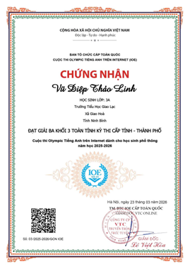 Trong năm học 2025–2026, Trường Tiểu học Giao Lạc đã tích cực tham gia nhiều cuộc thi, sân chơi trí tuệ dành cho học sinh Tiểu học, đặc biệt là chú trọng phát triển năng lực ngoại ngữ cho học sinh thông qua cuộc thi Olympic Tiếng Anh trên Internet (IOE). Với sự quan tâm, chỉ đạo sát sao của Ban giám hiệu, sự tận tâm, nhiệt huyết của đội ngũ giáo viên cùng tinh thần học tập nghiêm túc, chủ động của học sinh, nhà trường đã đạt được những kết quả đáng ghi nhận, tạo tiền đề vững chắc cho những bước tiến xa hơn trong tương lai.